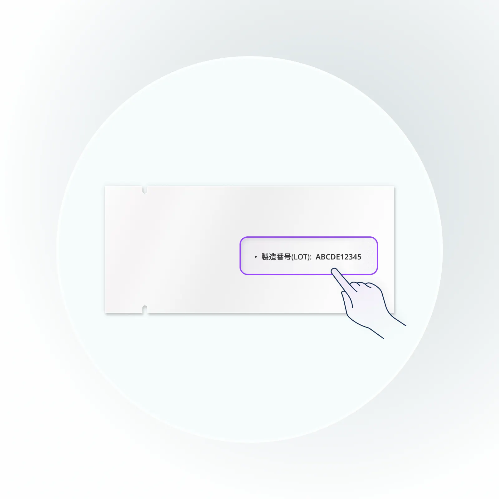 パッケージ箱の側面または個別スティックのフォイルパウチに印字されたLOT番号を、アプリに直接入力することもできます。